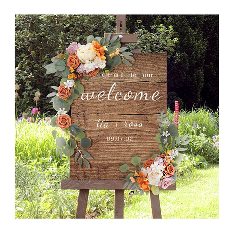 Arche de cérémonie en plein air Fleurs artificielles suspendues Ensemble de deux pièces Planche de bienvenue de mariage Décoration de fleurs